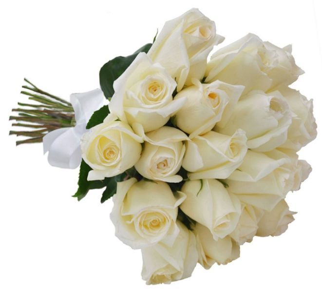 20 Rosas Brancas selecionadas e 100% naturais com um acabamento sofisticado em laço de fita de cetim branca