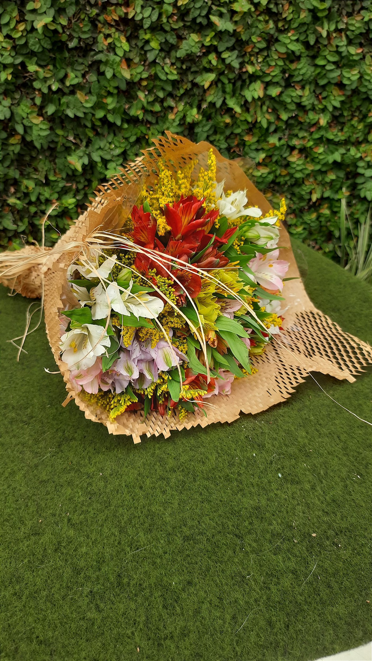 Luxuoson Buquê de astromélias embalado embalado no papel colméia