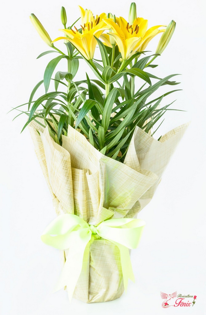 Muito utilizado na decoração pela beleza que agrega aos ambientes, o lírio também é uma ótima opção de presente. Aqui você encontra esse lindo arranjo de Lírio Amarelo Plantado envolto em um papel de presente dourado com uma delicada fita de cetim branca.